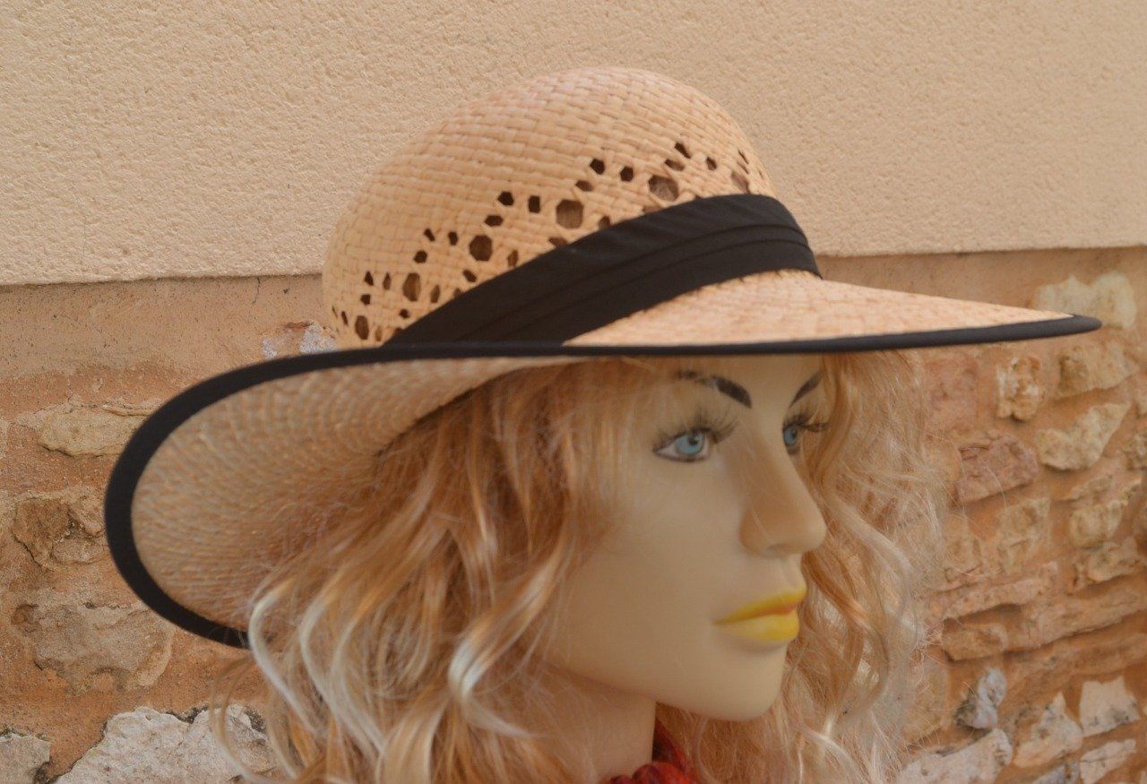 Capeline - bord 10 cms - 100 % raphia -Taille unique réglage intérieur avec lien - Fabriqué en Italie - marque AUREGA France