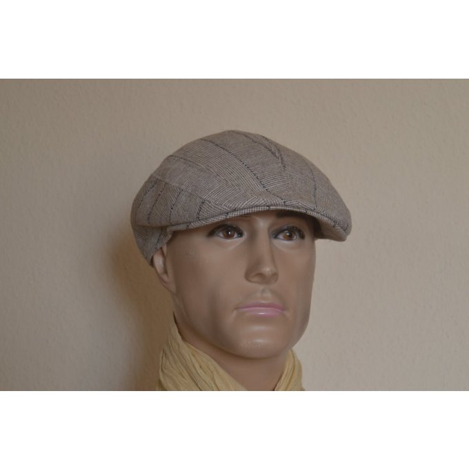 casquette été - 100 % lin - marque CRAMBES - Fabriqué en France - couleur beige carreaux rayures noires carreaux
