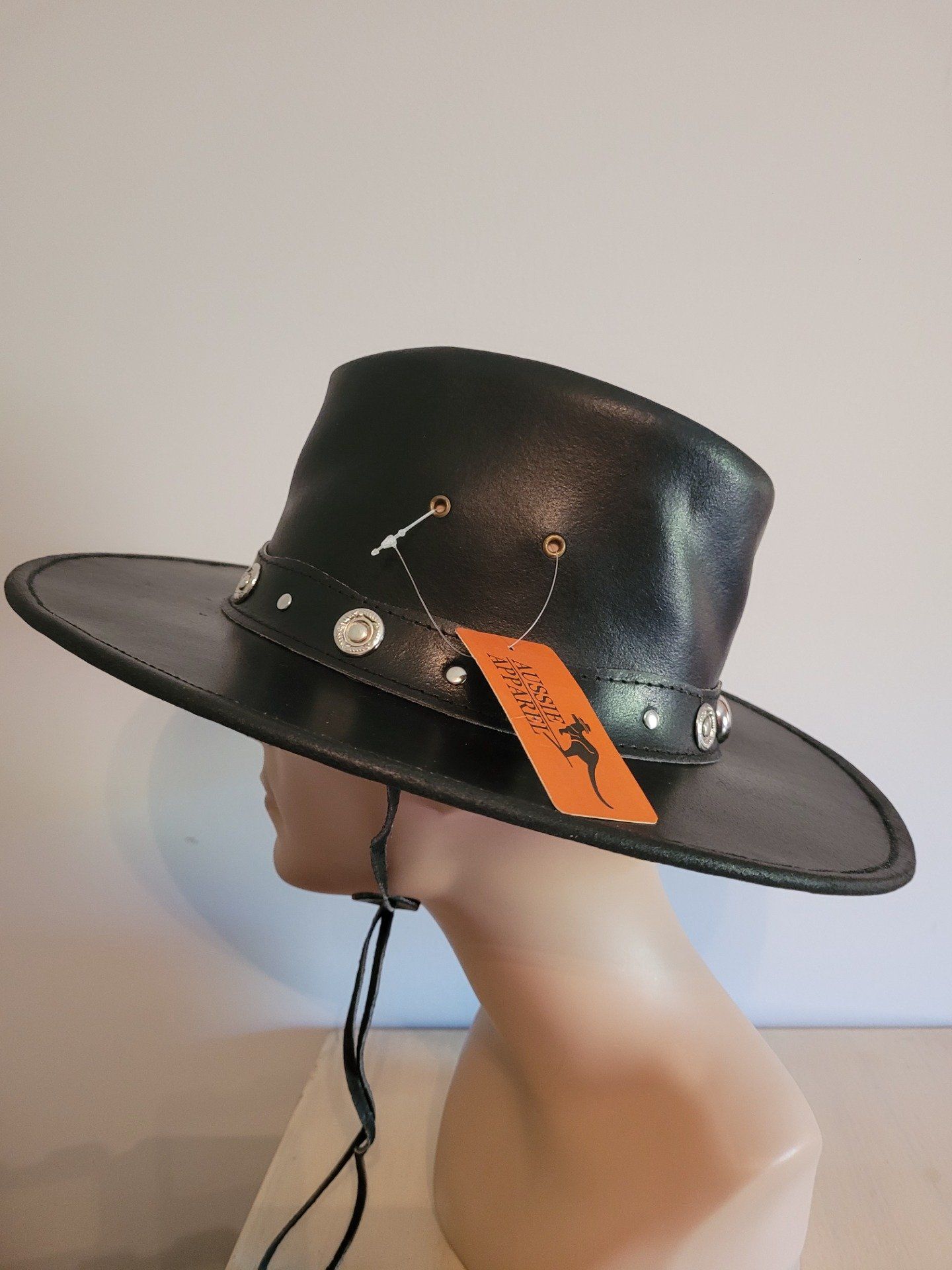 Chapeau cuir - 100 % cuir vachette - façon conchos western avec jugulaire - Fabriqué en Australie - marque AUSSIE APPAREL