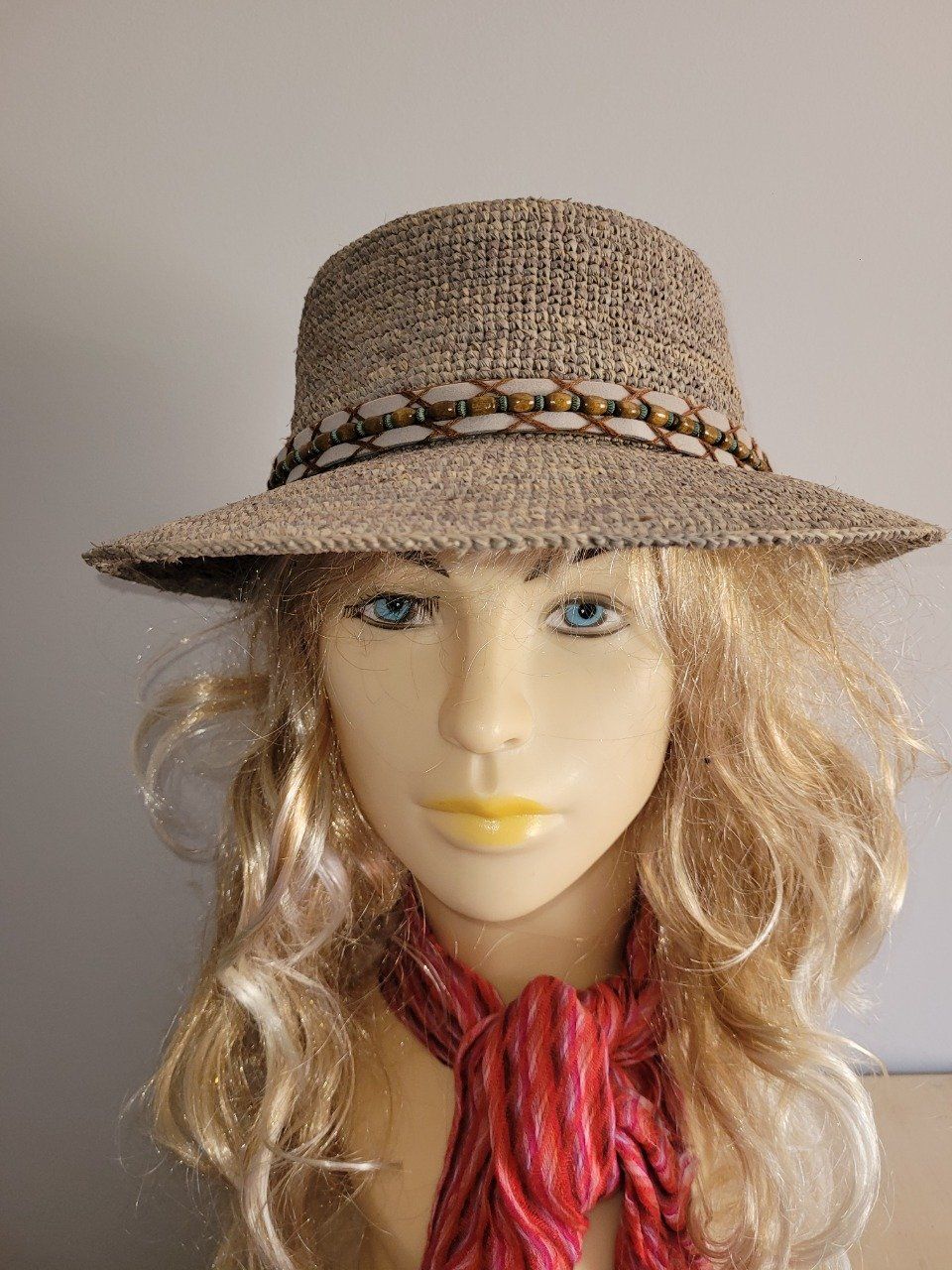 chapeau casquette grande visière 8 cms - 100 % raphia - Fabriqué en Italie - marque AUREGA France - taille unique réglage par lien intérieur